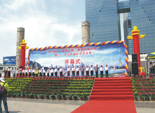 5月14日,“振興老區(qū) 服務三農(nóng) 科技列車沂蒙行”活動在臨沂市舉行。山東省委常委、副省長孫偉、省政協(xié)副主席李德強出席開幕式。科技部黨組成員、紀檢組組長郭向遠出席開幕式,科技部等部委有關領導、科技列車專家服務團全體成員,臨沂市副市長左沛廷等有關領導以及社會各界代表也參加了開幕式。