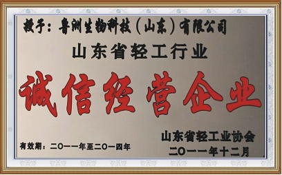 1月10日,山東省輕工業(yè)協(xié)會(huì)在濟(jì)南召開全省輕工業(yè)工作會(huì)議,對在“ 誠信山東”建設(shè)工作中做出貢獻(xiàn)的誠信經(jīng)營企業(yè)進(jìn)行表彰,會(huì)上,魯洲生物科技(山東)有限公司被授予“山東省輕工行業(yè)誠信經(jīng)營企業(yè)”并頒發(fā)了獎(jiǎng)牌。